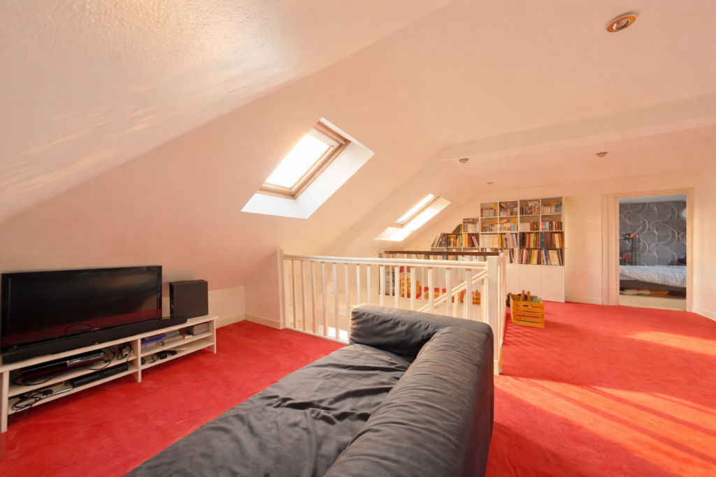 À l’étage supérieur, un grand palier modulable offre de nombreuses possibilités d’aménagement : bureau, chambre supplémentaire ou espace détente selon les besoins. Ce niveau accueille également trois belles chambres sous combles avec penderies et une seconde salle d’eau avec WC.