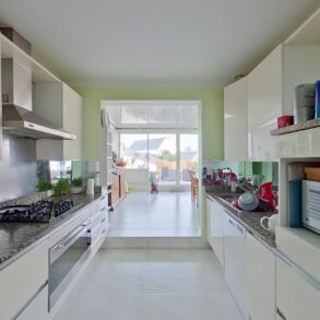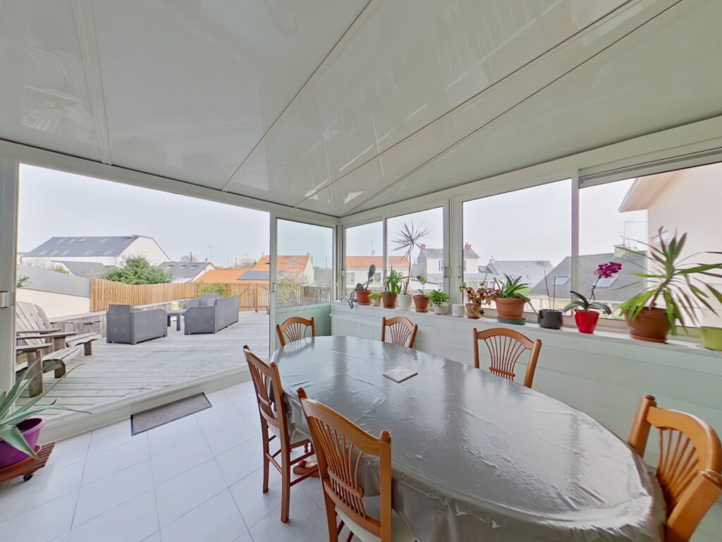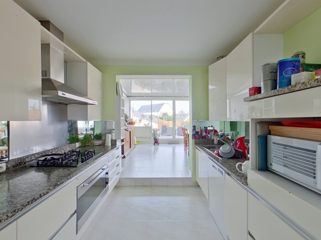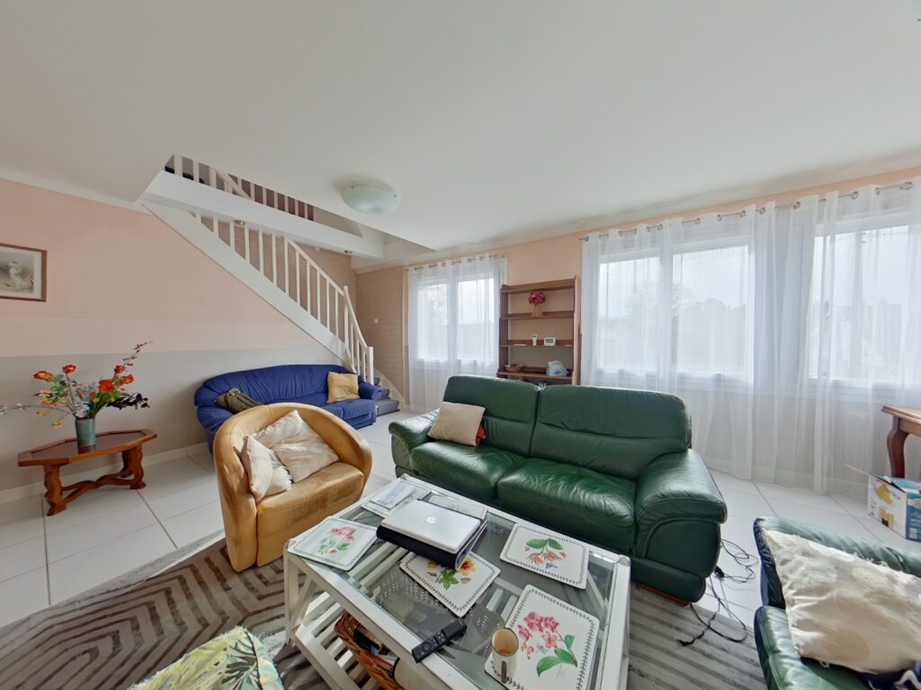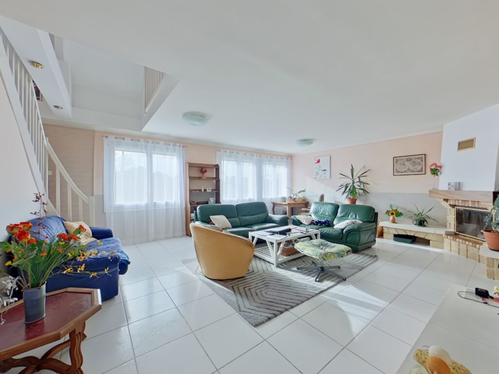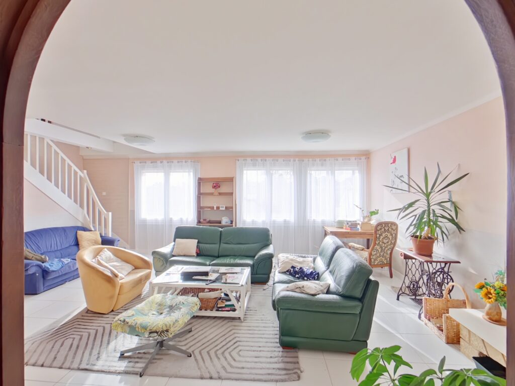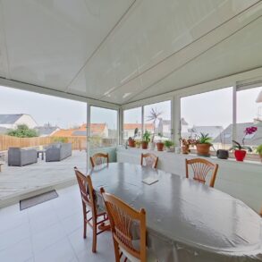 L’accès privatif au rez-de-chaussée conduit à l’étage où l’on découvre un vaste séjour bénéficiant d’une belle hauteur sous plafond et d’une cheminée fonctionnelle. La cuisine aménagée et équipée s’ouvre sur une véranda, prolongée par une terrasse de 20 m² bien exposée.