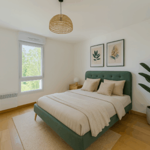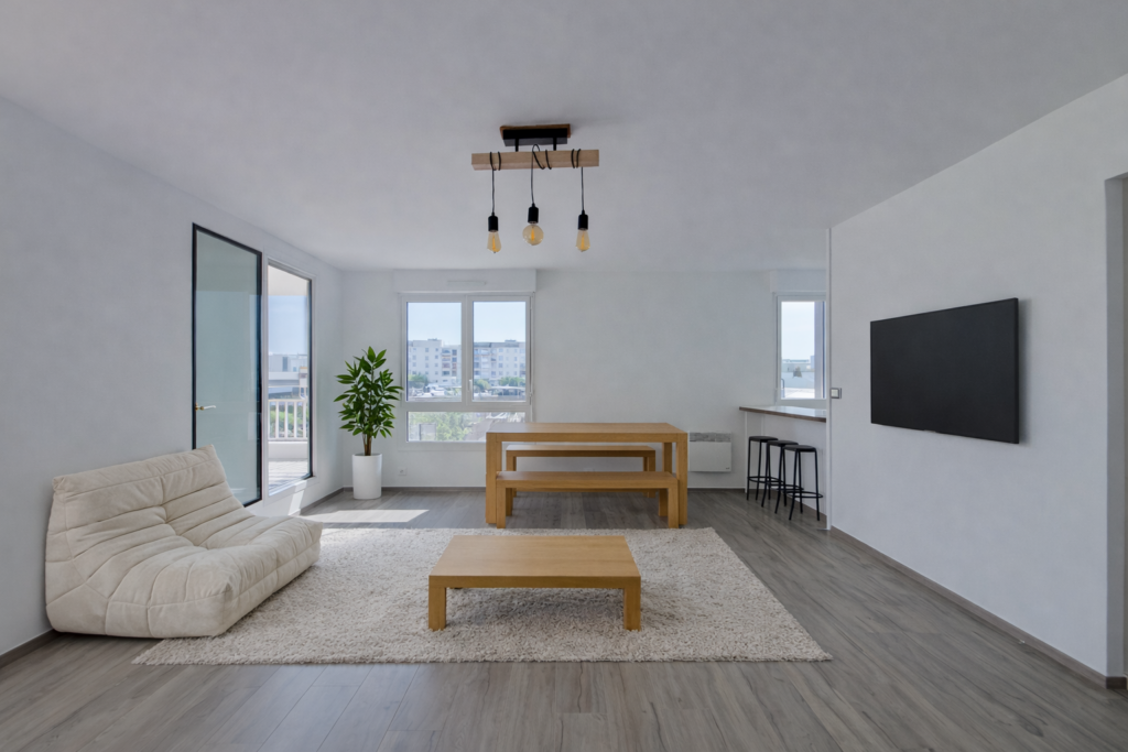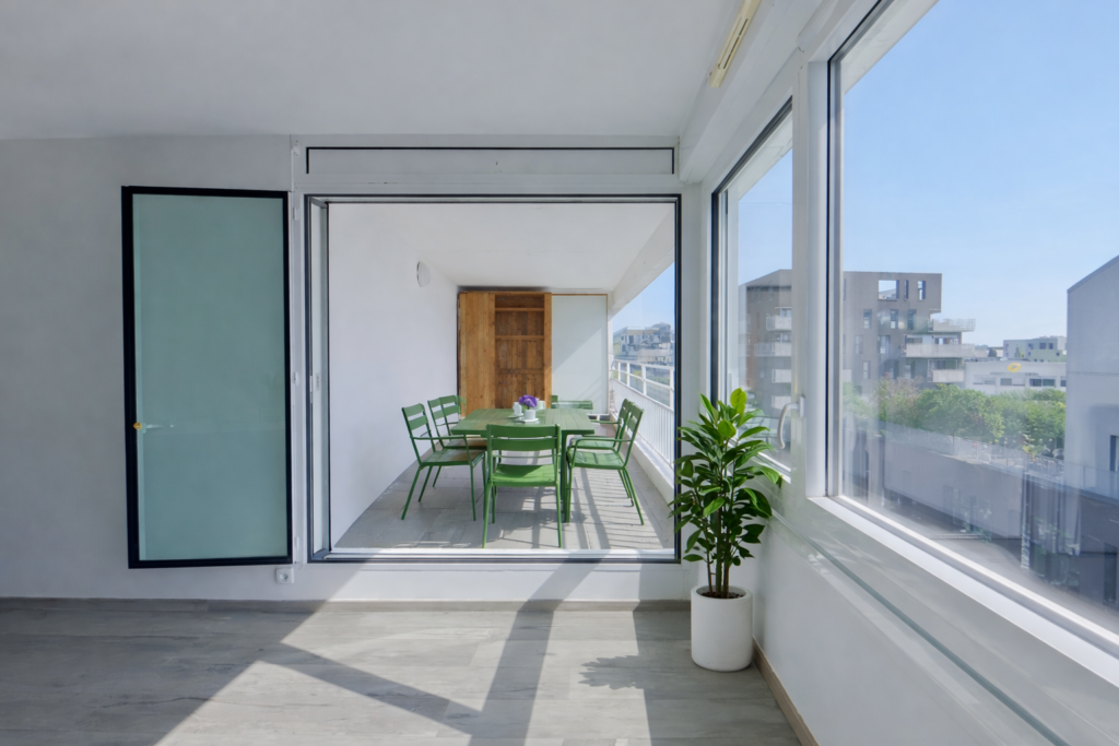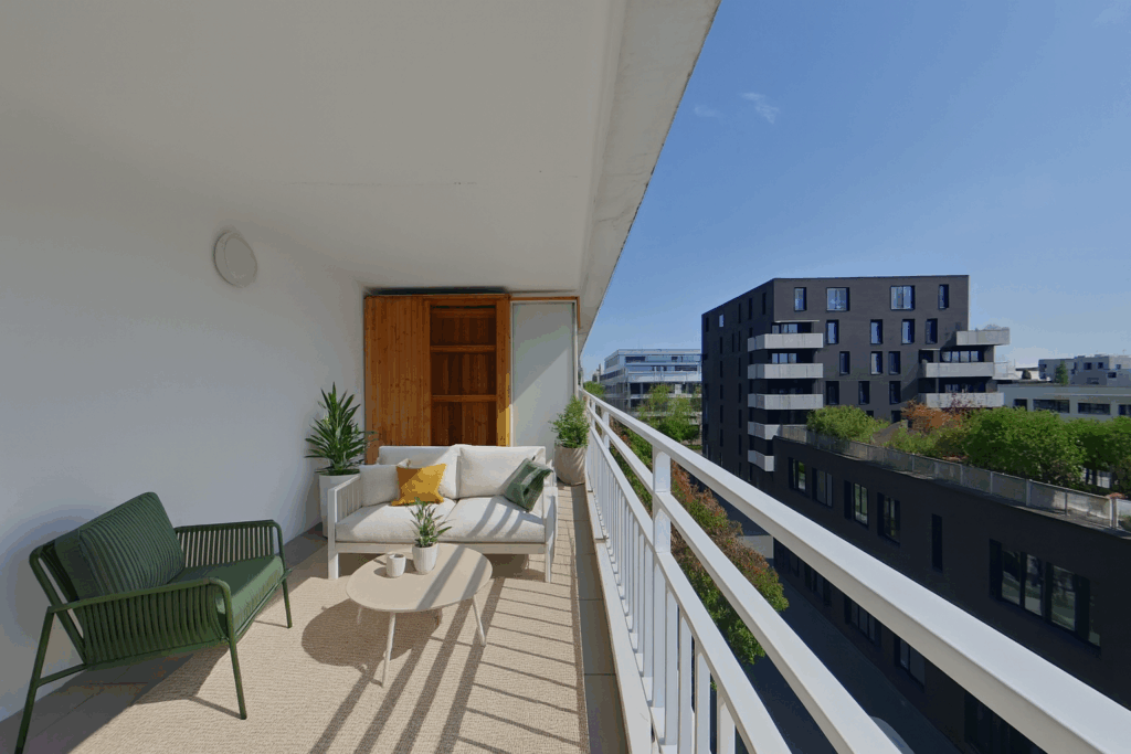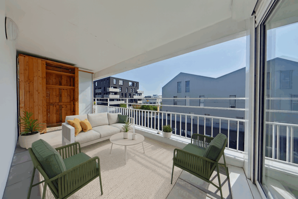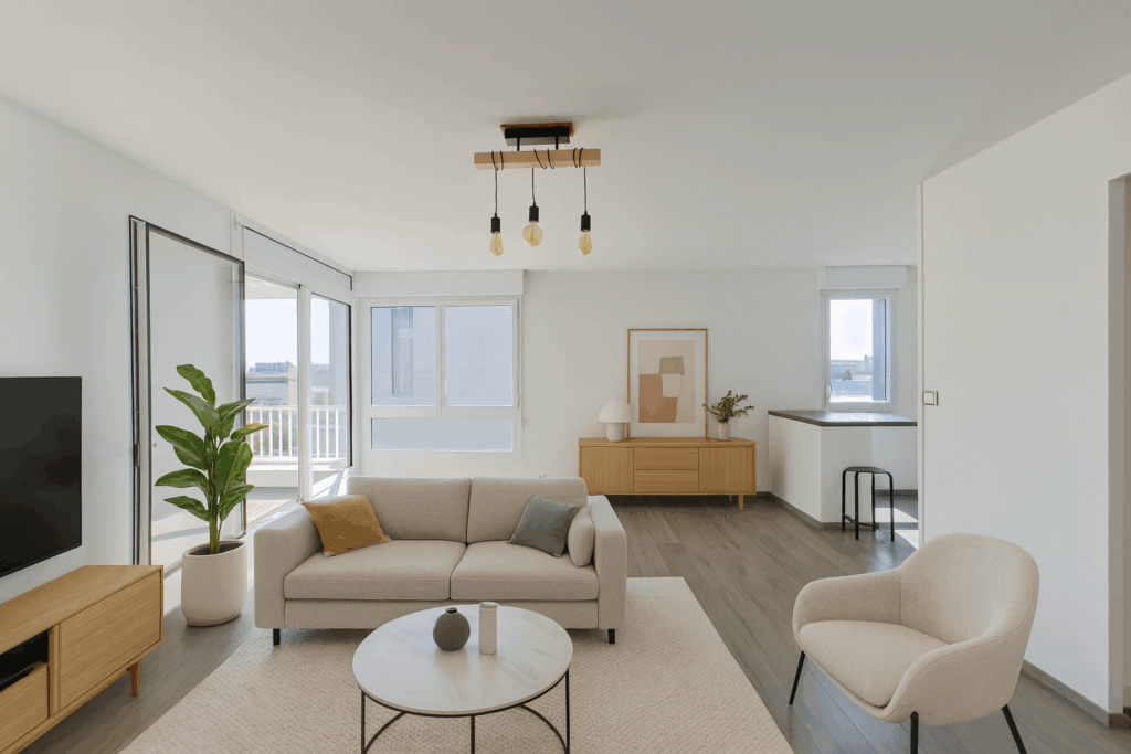 Le salon/séjour est prolongé par une Loggia de 9m2 exposée plein sud.