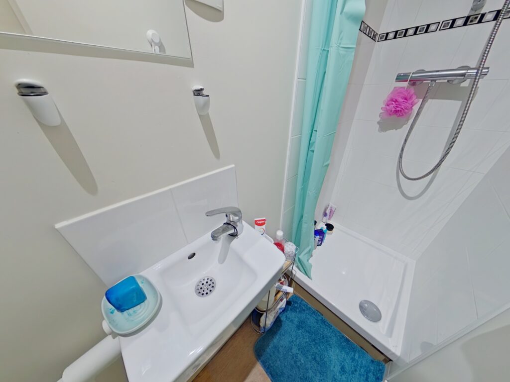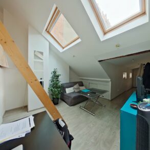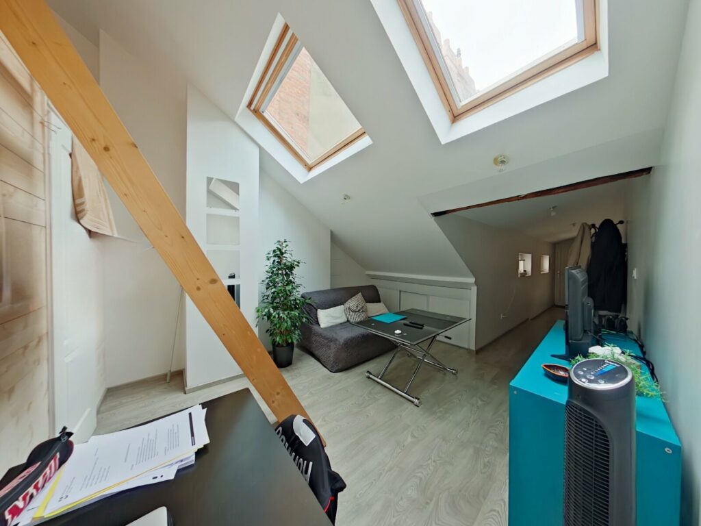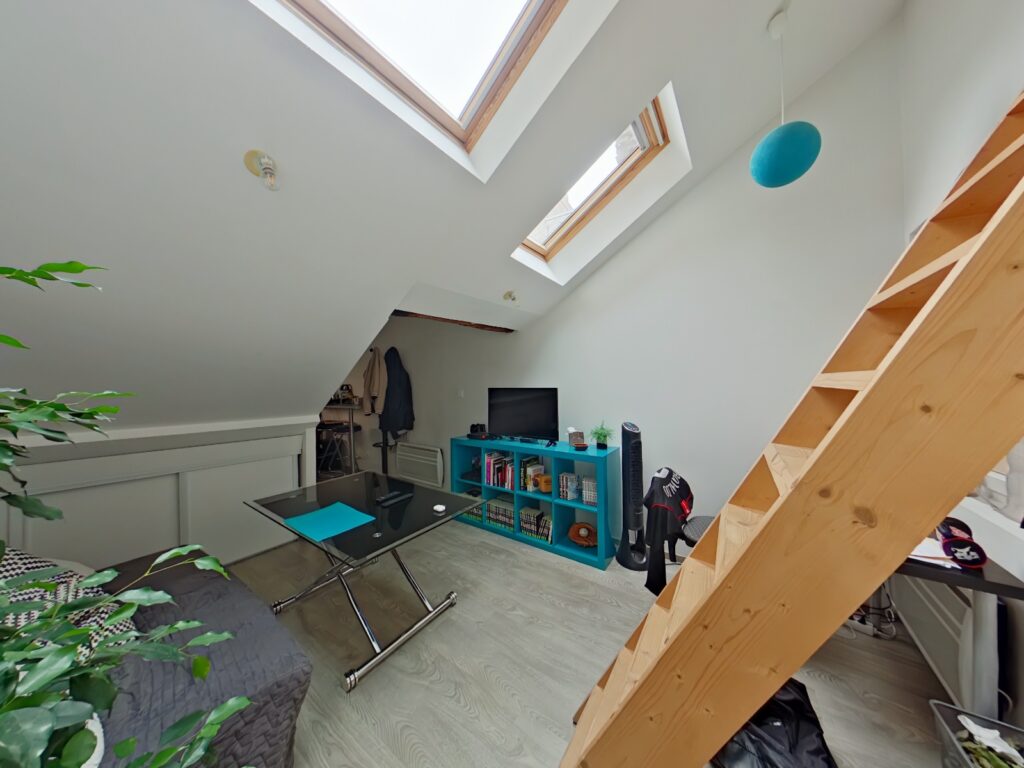 Au troisième étage, studio de 22m2 carrez (29m2 au sol), se composant d'une entrée avec cuisine/coin repas de 8m2, prolongée par un séjour de 11 m2 au sol + coin nuit en mezzanine.