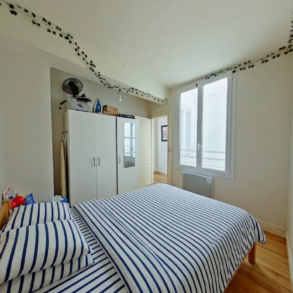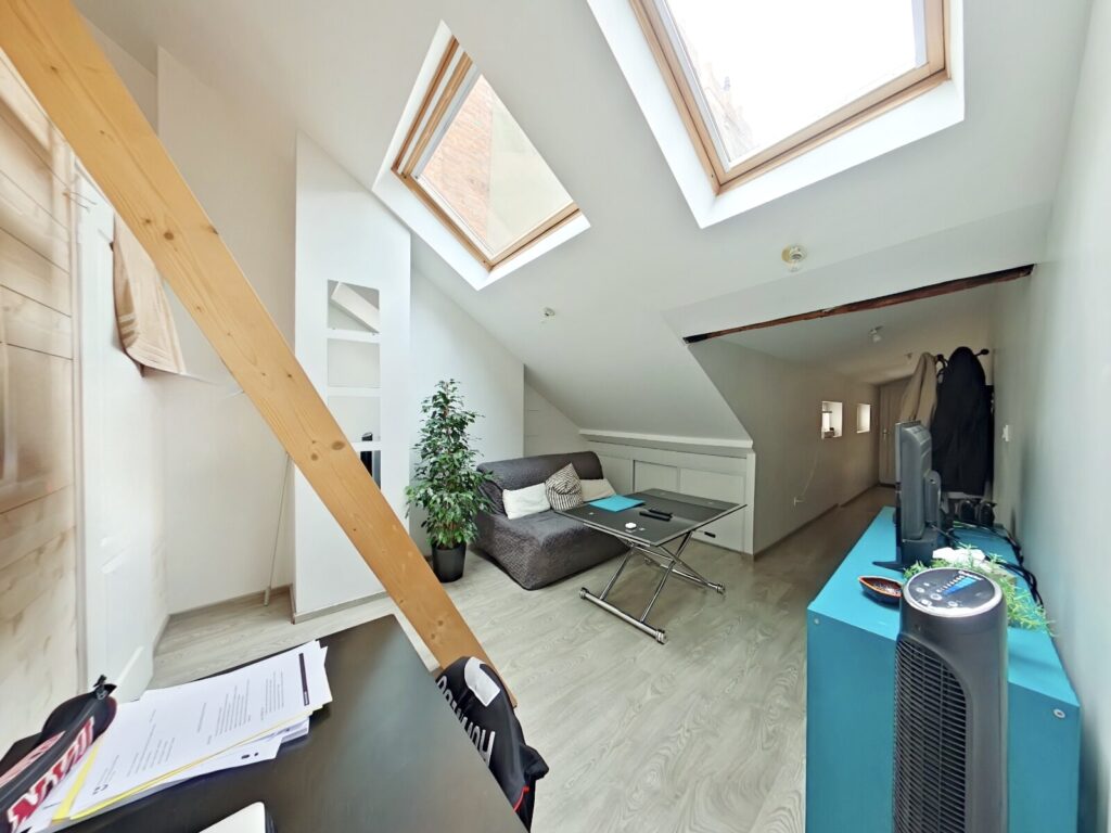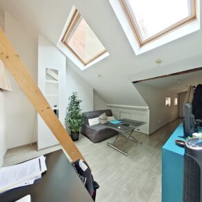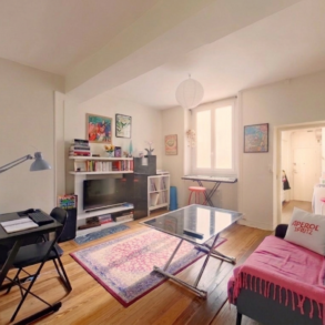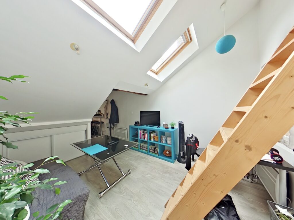 Au quatrième étage, studio de 22m2 carrez (29m2 au sol), se composant d'une entrée avec cuisine/coin repas de 8m2, prolongée par un séjour de 11 m2 au sol + coin nuit en mezzanine.