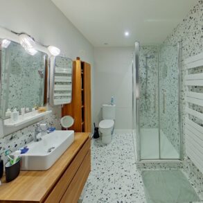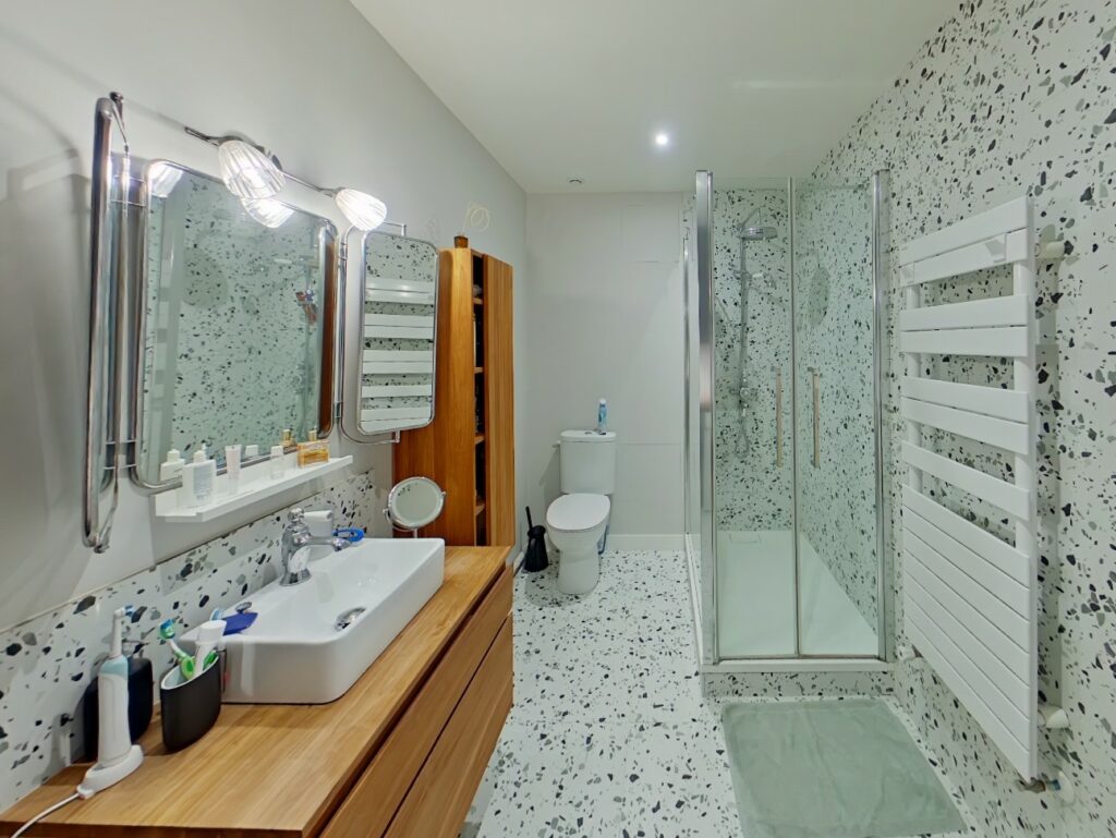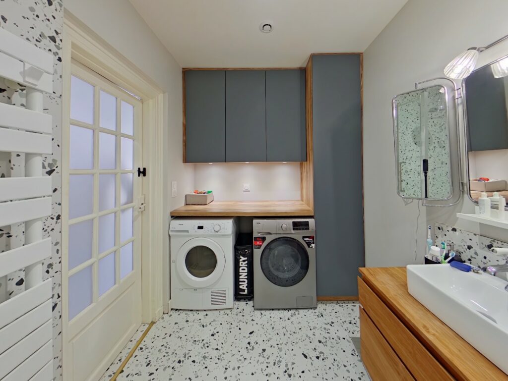 Une salle d'eau comprenant wc et buanderie complète cet appartement.