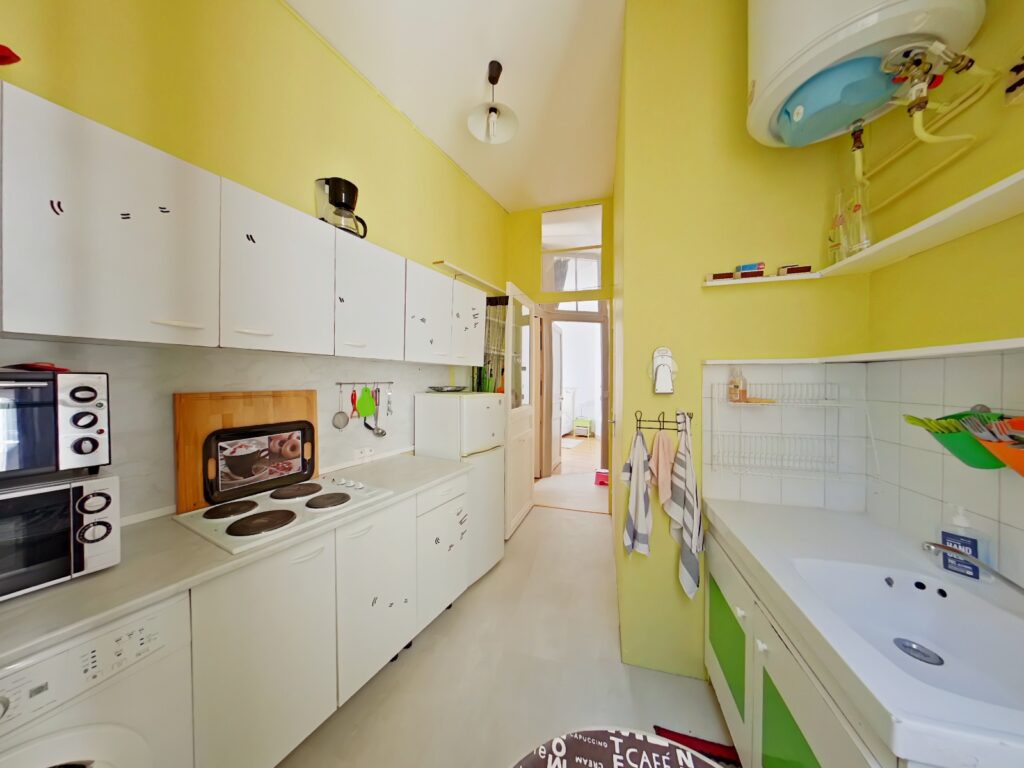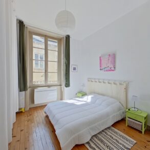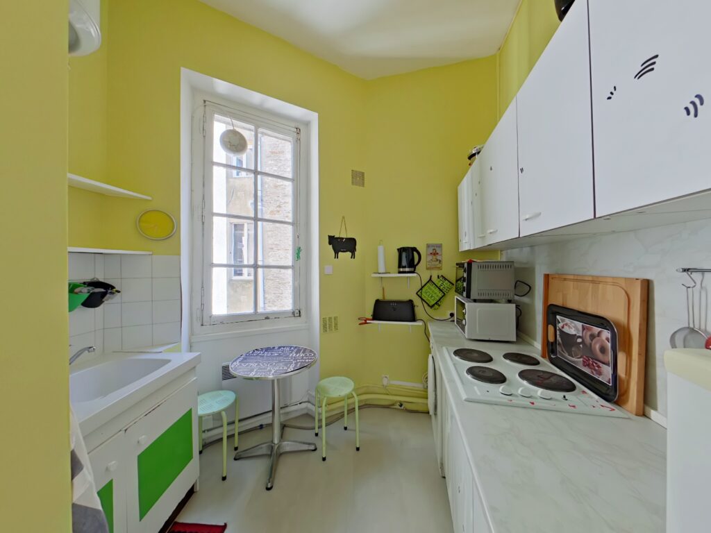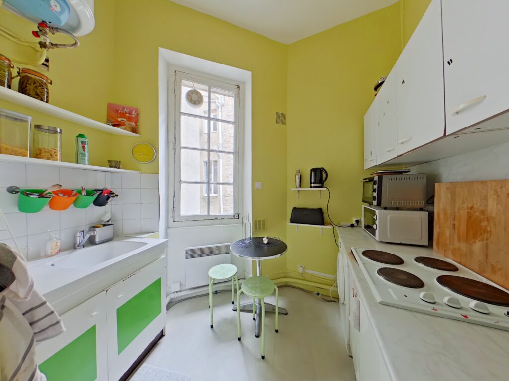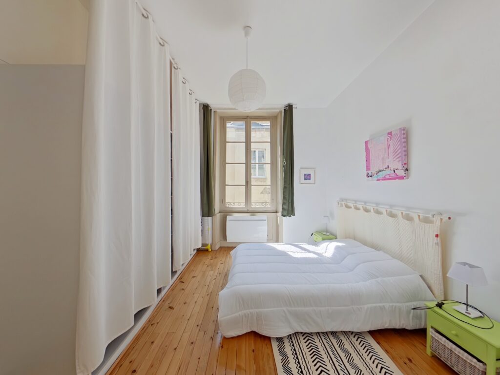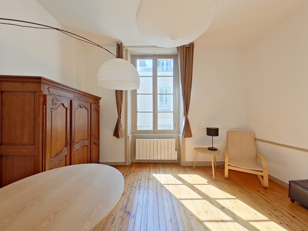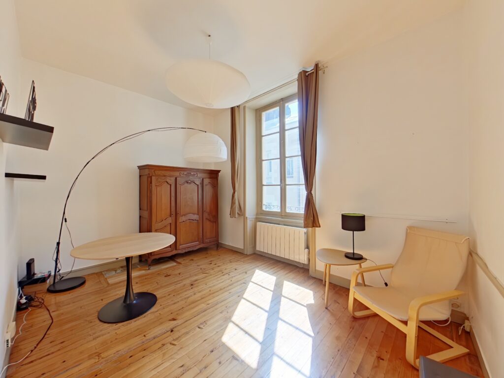 Dans un bel immeuble de pierre de taille ravalé, un appartement de type 2, situé au 4ème étage avec ascenseur composé d'une entrée avec placard, une cuisine aménagée et équipée, un salon, une chambre avec placard aménagé et une salle d'eau avec wc sanibroyeur.