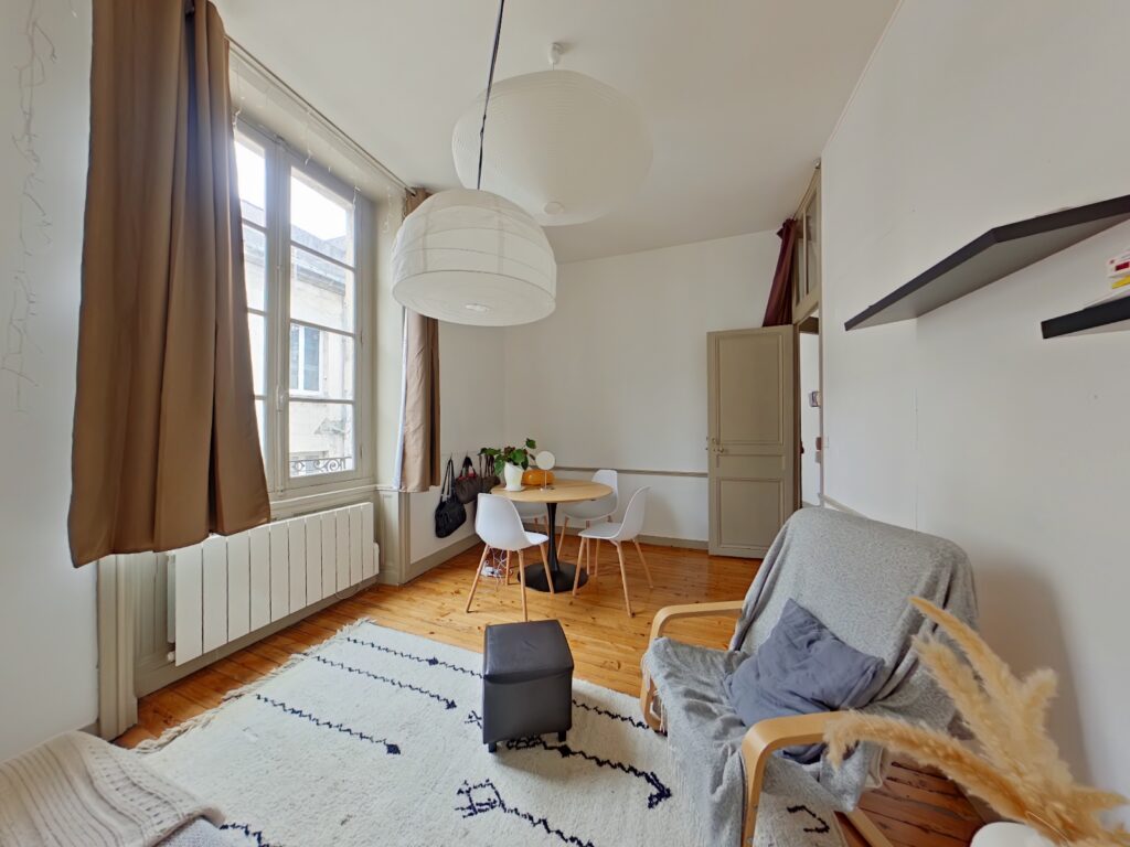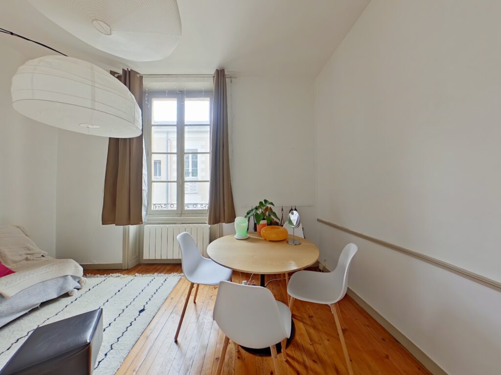 Dans un bel immeuble de pierre de taille ravalé, un appartement de type 2, situé au 4ème étage avec ascenseur composé d'une entrée avec placard, une cuisine aménagée et équipée, un salon, une chambre avec placard aménagé et une salle d'eau avec wc .