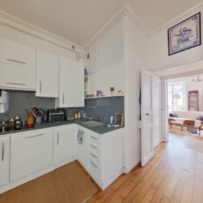 Le salon/séjour d'une superficie de 24 m2 bénéficie d'une exposition Sud, sans vis à vis. La cuisine équipée, aménagée et dinatoire de 15,3 m2 est semi séparée ouverte de la pièce principale.
