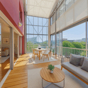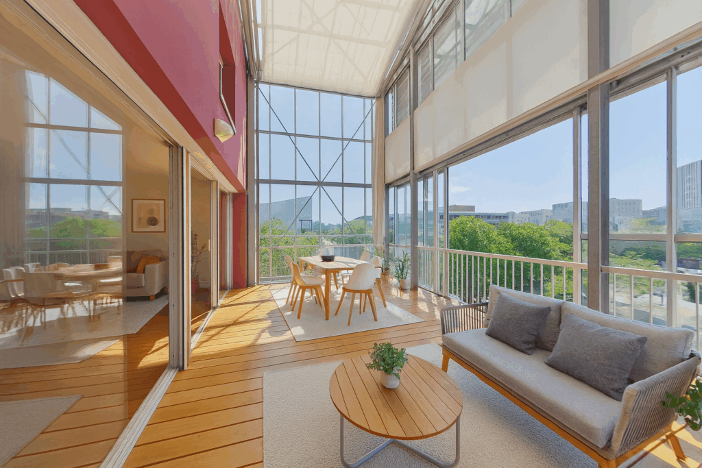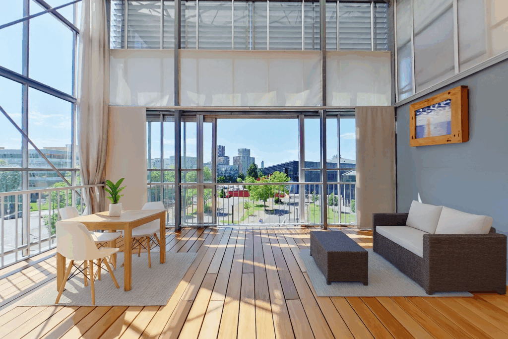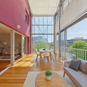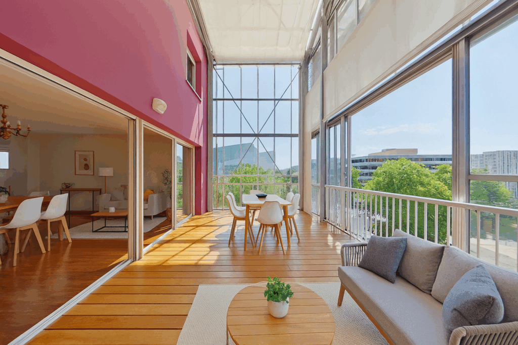 Appartement/Maison d'une superficie de 116m2 en duplex à triple exposition et prolongé par une serre de 22 m2, exposée Sud/Ouest, niché au dernier étage d'une copropriété récente de standing.