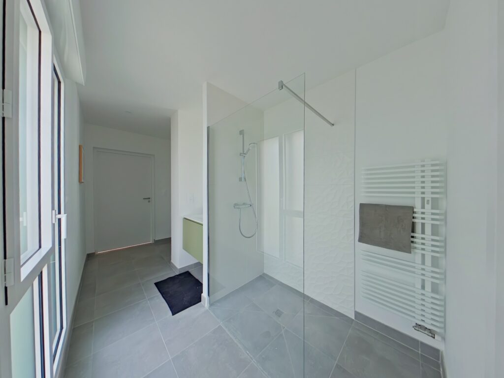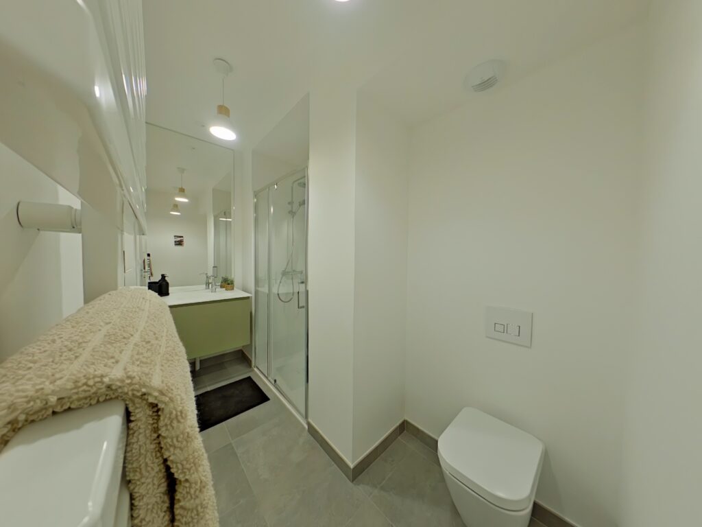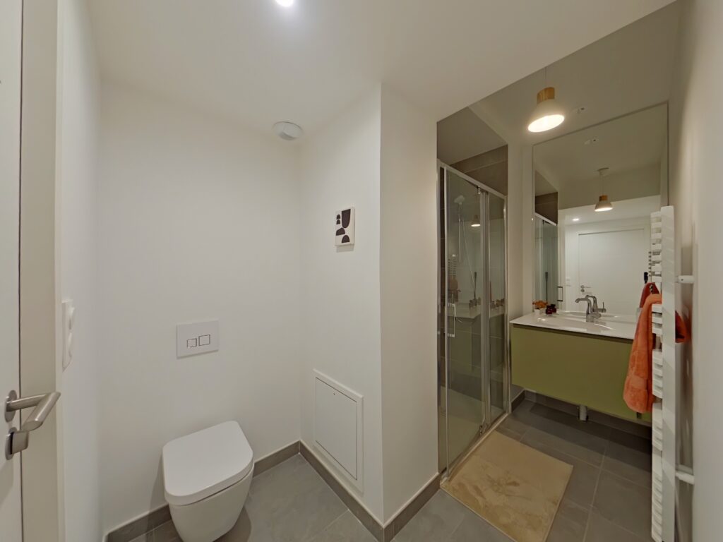 Chauffage relié au réseau de chaleur urbain, sèche serviette dans les salles d'eau.