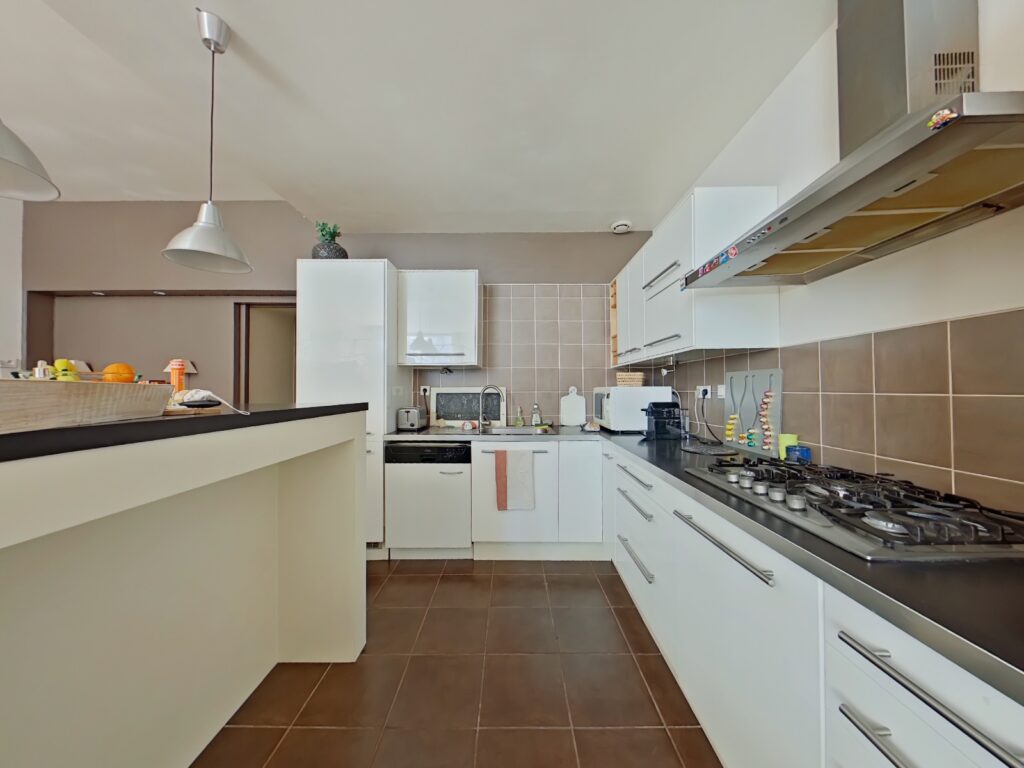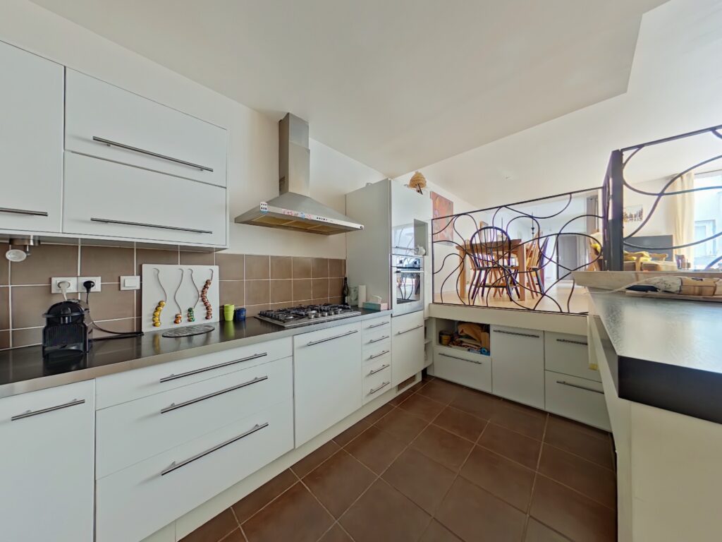 La cuisine équipée et aménagée de 9 m2 est ouverte sur la pièce principale.