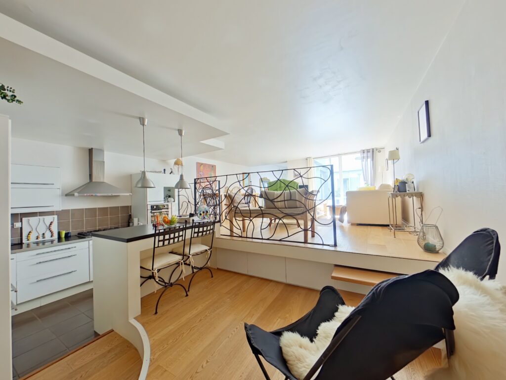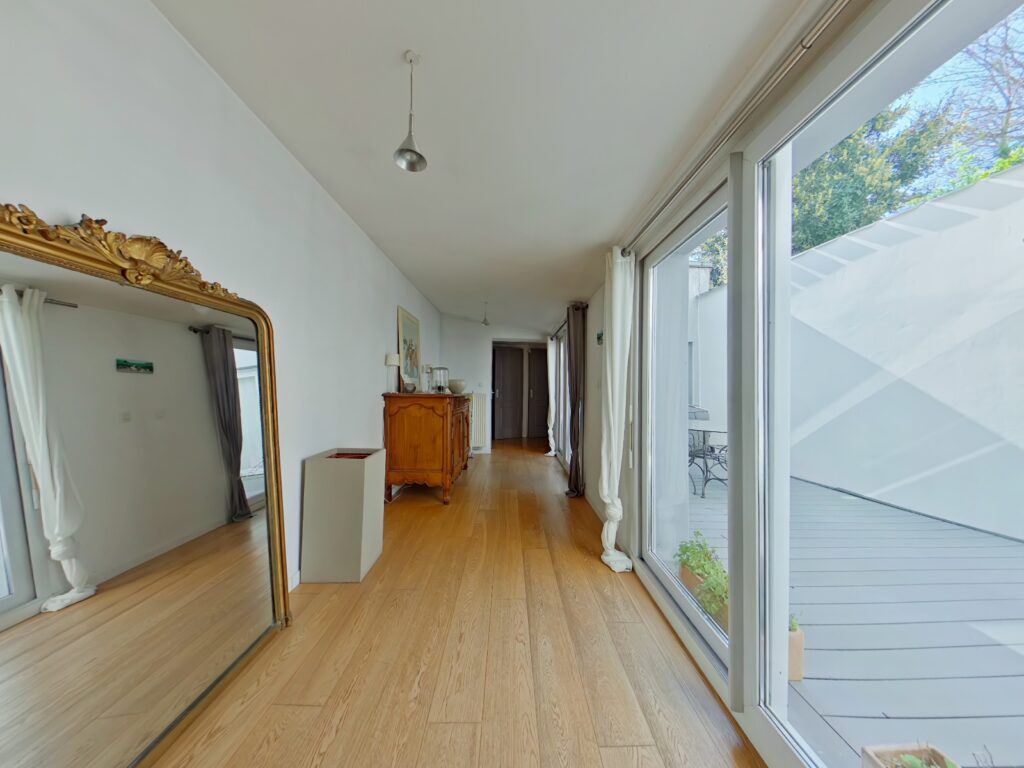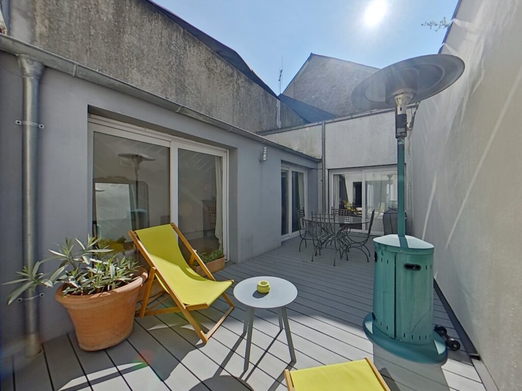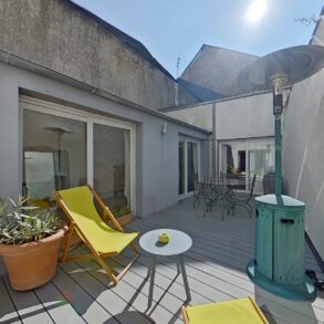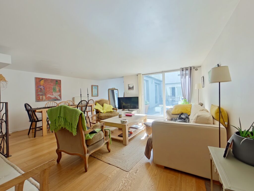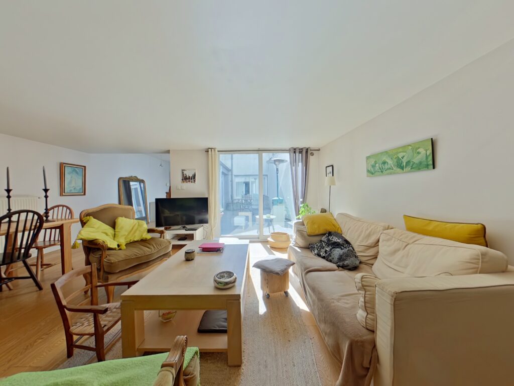 Au sein d'une copropriété intimiste entretenue appartement type maison de ville T3 baigné de lumière de 89 m2 avec patio de 18 m2.