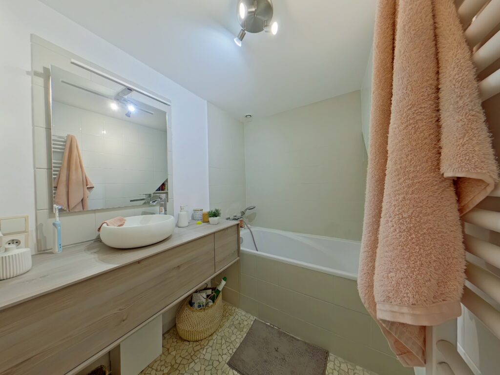 L'appartement situé au rez de chaussée se compose d'une vaste entrée avec buanderie et WC séparés.