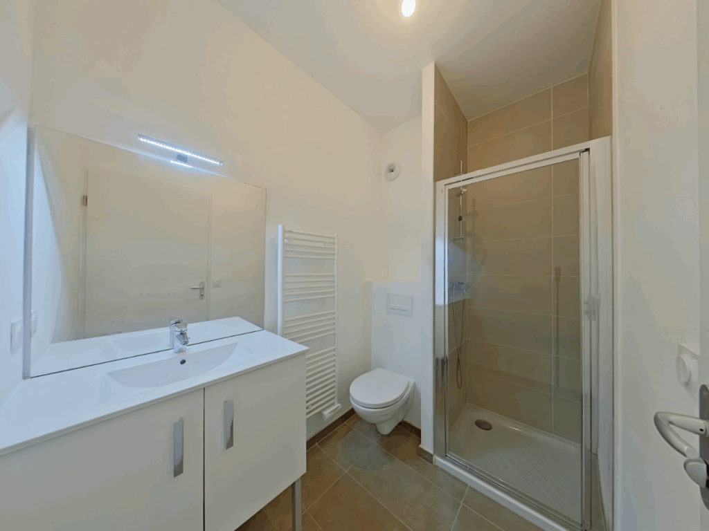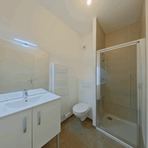 Chauffage individuel gaz, sèche serviette dans la salle de bains.