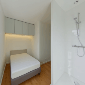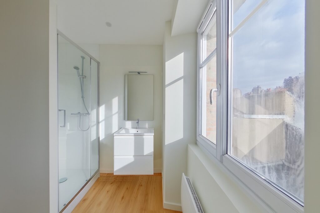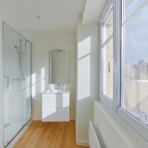 Une buanderie privative de 3m2 avec machine à laver se trouve sur le palier et non comptabilisée dans la superficie habitable.