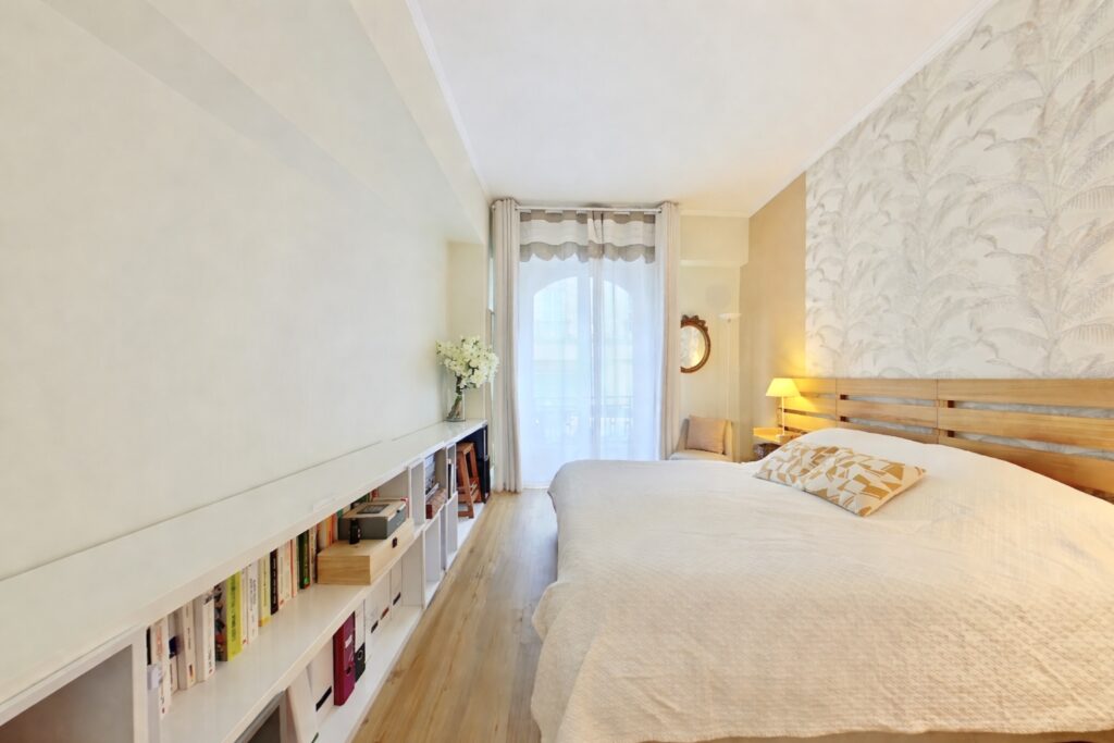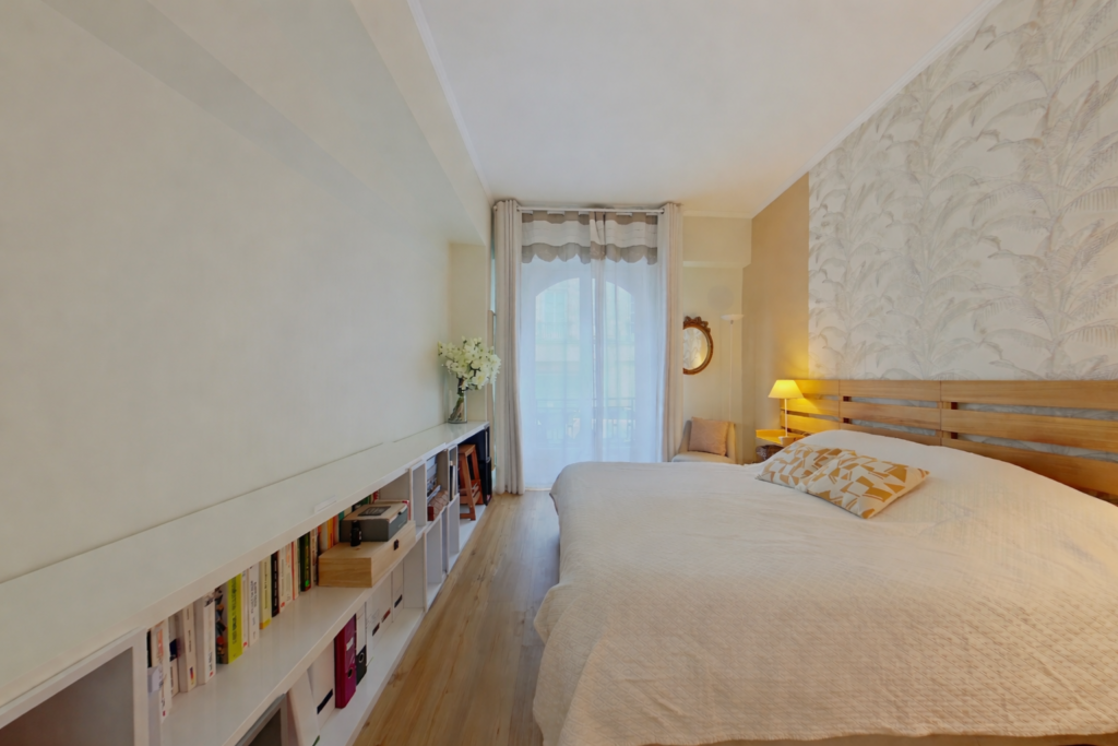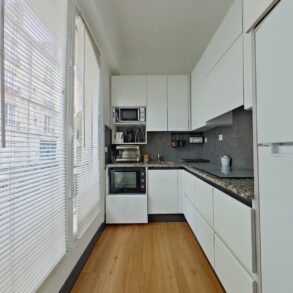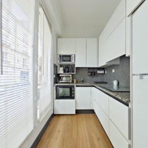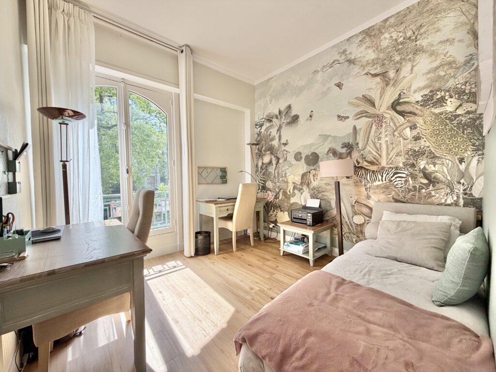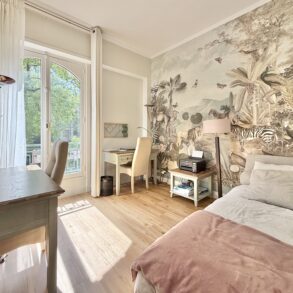 L'appartement se compose d'une entrée avec placard, desservant la pièce principale de 31,3 m2 à la pleine vue sur le Muséum d'Histoire Naturelle et bénéficiant d'une belle luminosité grâce à sa double exposition Sud et Ouest.