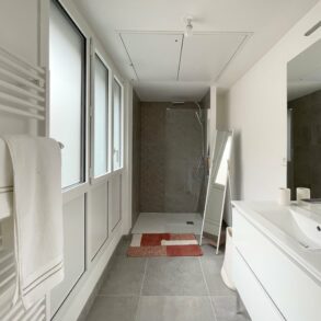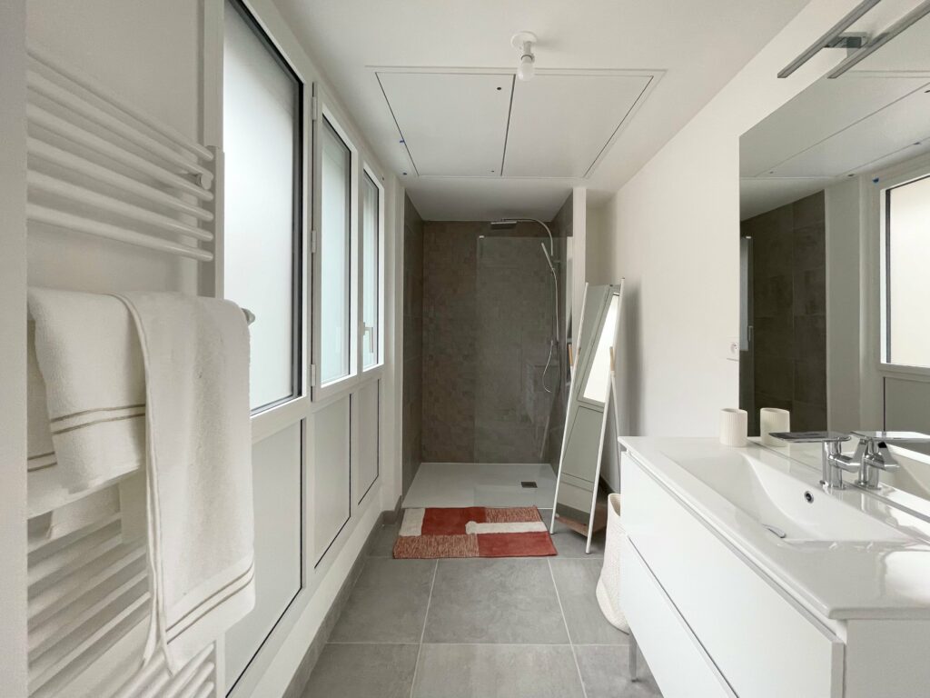Chauffage via traitement de l'air couplé à la chaudière individuel gaz, sèche serviette dans la salle de bains.