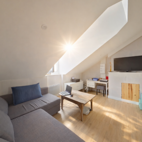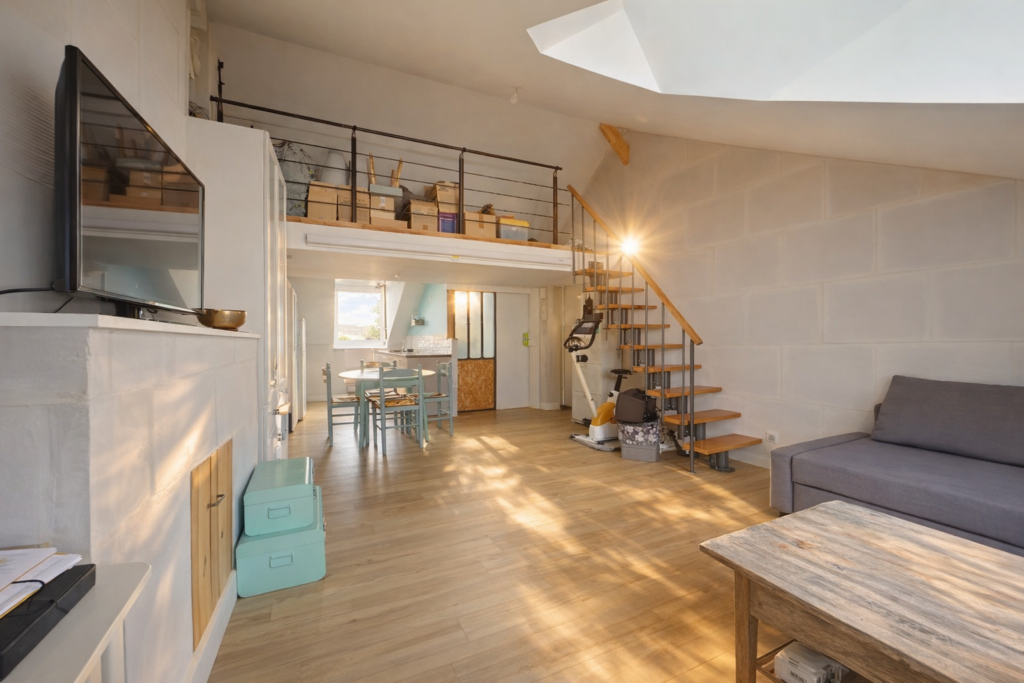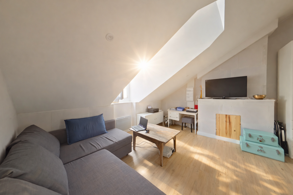 D'une superficie de 30 m² Carrez (45.5 m² au sol), il se compose d’une belle pièce de vie traversante, baignée de lumière et entièrement rénovée, avec de beaux volumes.
