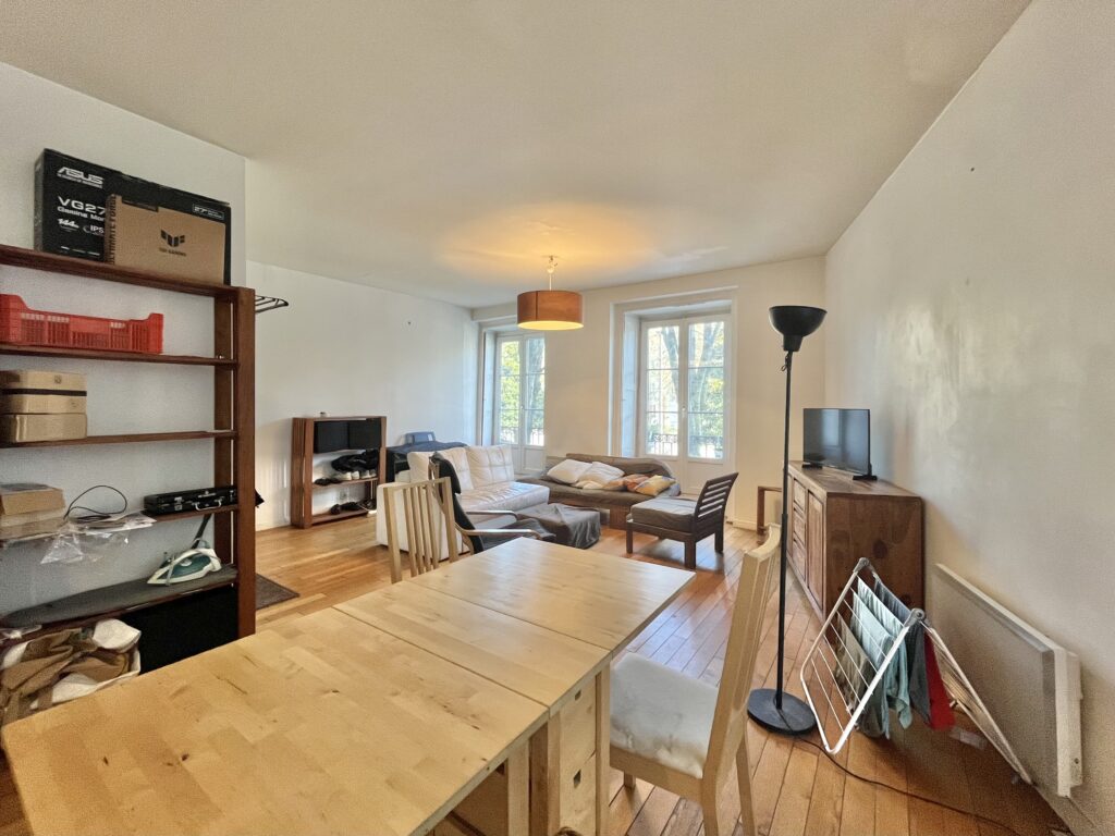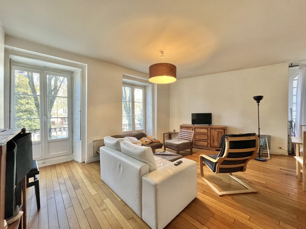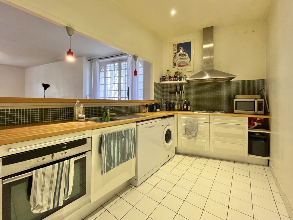 NANTES, hyper centre, donnant sur cour des 50 otages, au 2 rue Didienne, GRASLIN IMMOBILIER votre agence immobilière du centre-ville vous propose un grand T3 Meublé de 71m² à louer. Cette location est située au 1er étage d’un immeuble ancien, il se compose d’une grande pièce de vie en L sur parquet, d’une cuisine ouverte aménagée et équipée de plaques de cuisson, une hotte, un four, un lave-linge et un lave-vaisselle, un dégagement, deux chambres et une salle de bains avec baignoire attenante aux deux chambres et un wc séparé.