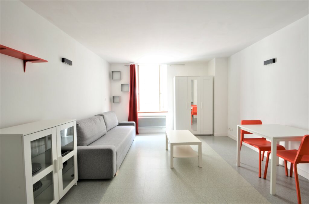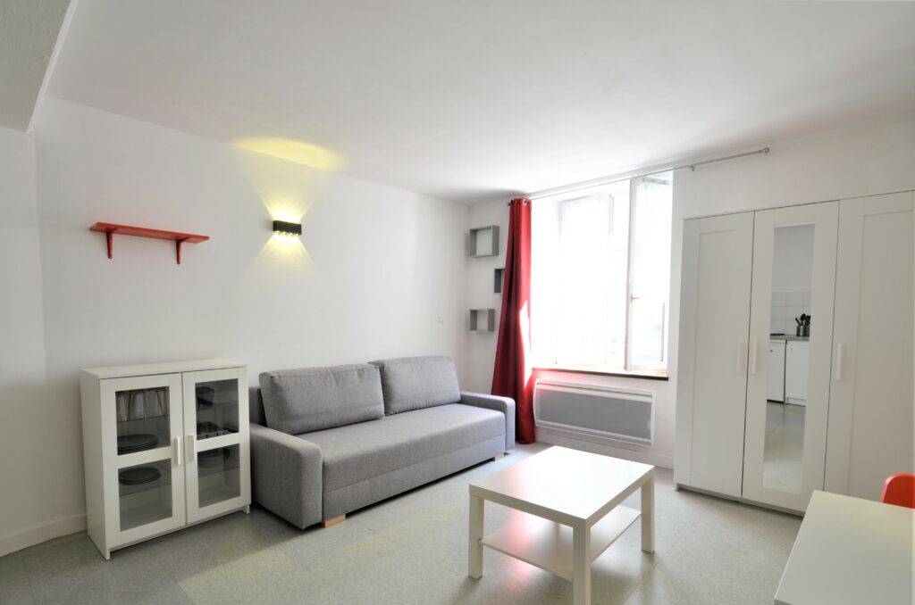 Nantes, quartier Chantiers Navals, au 12 rue Charles Brunellière GRASLIN IMMOBILIER votre agence immobilière du centre-ville vous propose un appartement de type studio, T1/F1 meublé de 28m². Cette location située au 1er étage, est composée d’une entrée, une pièce de vie lumineuse avec coin cuisine aménagée et équipée de plaques induction, réfrigérateur top et une machine à laver, une salle d’eau avec wc.