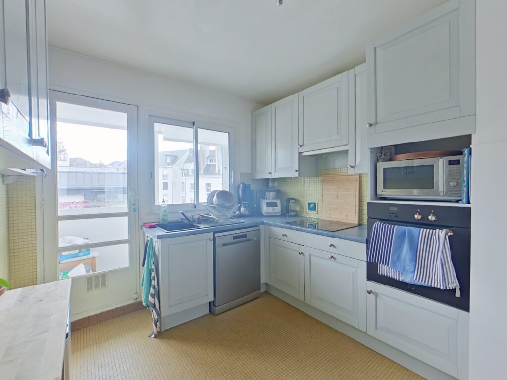 NANTES CENTRE, quartier Dobrée - 12 Rue de la Verrerie, Graslin Immobilier, votre agence immobilière du centre-ville de Nantes vous propose à louer un appartement lumineux de type T3 / F3. Cette location se trouve au 4ème et dernier étage avec ascenseur, il se compose d’une entrée, d’un double salon-séjour sur parquet, ensoleillé avec balcon, une jolie vue sur les toits, cuisine indépendante aménagée et équipée de plaques induction, une hotte, un four, un micro-ondes et un réfrigérateur, avec loggia, 2 chambres, une salle de bains avec baignoire, WC séparé, dégagement avec placard.