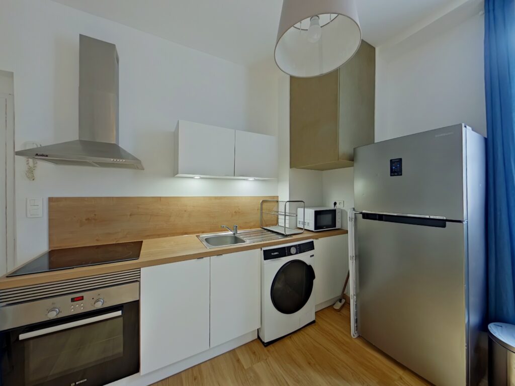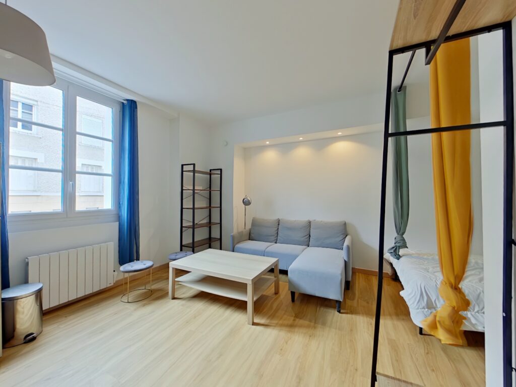 Nantes, quartier SAINT-FELIX , au 15 rue de Bouillé, proche du quai de Versailles, GRASLIN IMMOBILIER votre agence immobilière du centre-ville vous propose un appartement de type studio, T1/F1 meublé de 29m². Cette location située au RDC, est composée une pièce de vie avec coin cuisine aménagée et équipée de plaques induction, un four, une hotte, un lave-linge, un réfrigérateur et un micro-ondes, un coin nuit, une salle d'eau et wc séparé. Chauffage individuel électrique. Eau froide comprise dans les charges de l’immeuble.