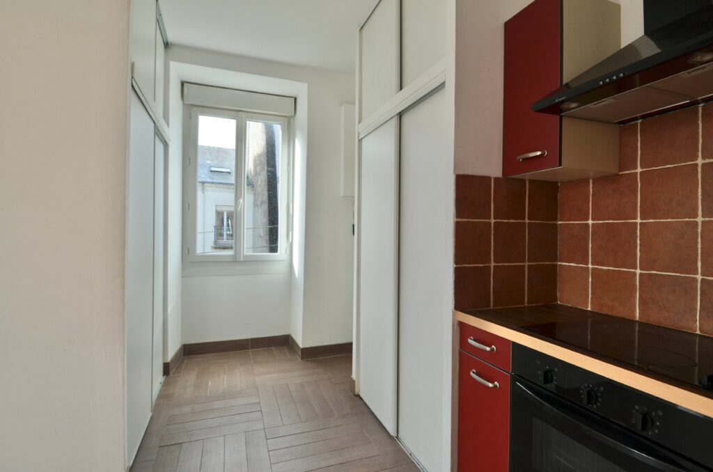 NANTES, Ile de Nantes, Vincent Gâche, au 21 rue Dorgère, GRASLIN IMMOBILIER votre agence immobilière du centre-ville pour propose à louer un appartement de type studio T1/F1 de 22,71m² situé au 2ème étage. Cette location est composée d’une entrée avec placard, pièce de vie avec un espace mezzanine, une cuisine ouverte aménagée et équipée de plaques vitrocéramique, une hotte, un four et un réfrigérateur top, une salle d’eau avec arrivée d’eau pour machine à laver, WC séparés.